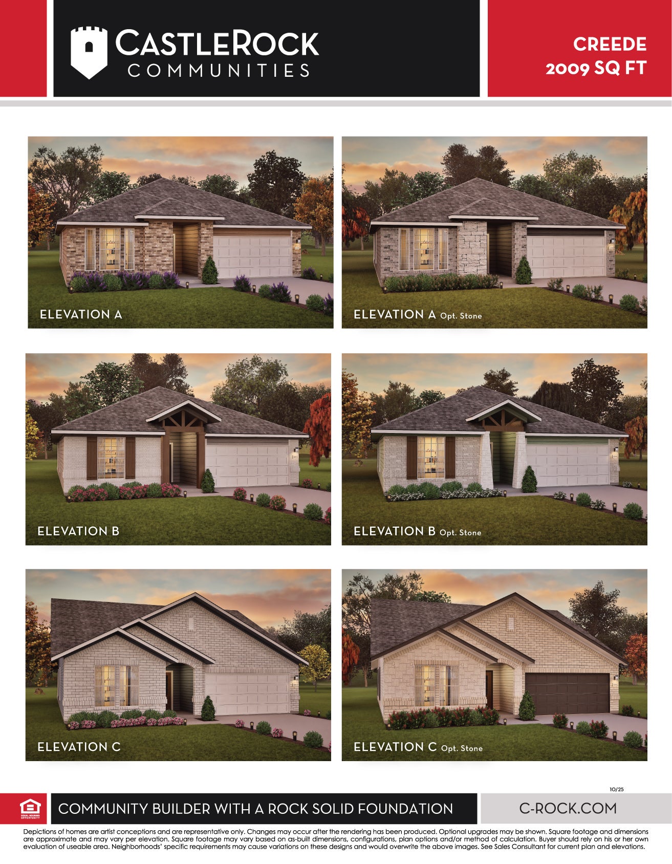 Boasting with space, the Creede plan is a highly sought-after one-story home with space for the whole family to enjoy. This three-bedroom, two-bathroom home is the perfect layout for most any lifestyle, no matter what stage of life you are in. Entering the home, you will find the long foyer leading to the second and third bedrooms, with the full secondary bathroom residing in the middle. Across the foyer lies the entry to your two-car garage. If you are yearning for more space to park a third car, or simply to store necessary items, decide to tack on an extra half-car or one-car garage! Proceed further down the hall where you will discover your walk-in utility room along with a secluded study room where you can work from home peacefully or choose to transform it into a fourth bedroom, if you are needing the extra space. Finally, at the back of the home, you are met with your combined living space. The open kitchen comes equipped with granite countertops, ample counter space, industry-leading appliances, and a pantry. It also opens up to the formal dining room and family room space, making this the perfect layout for entertaining guests. Add a stylish element to your family room by putting in an optional fireplace that will surely impress all of your family and friends. Right off the dining room, there is access to your backyard with the option to include a covered patio. Around the corner from the family room is your private master bedroom. Your refined master bathroom is complete with double vanities with LED down lighting, a bathtub and shower, and a substantially-sized walk-in closet. If you prefer a shower over a bathtub, you can opt to include a super shower in both the master bathroom or secondary bathroom instead! With plentiful included features and exclusive options available to you, the Creede floor plan is tailored to fit your lifestyle, wants, and needs the way you have always imagined. You will not ever have to sacrifice comfort with the Creede!
