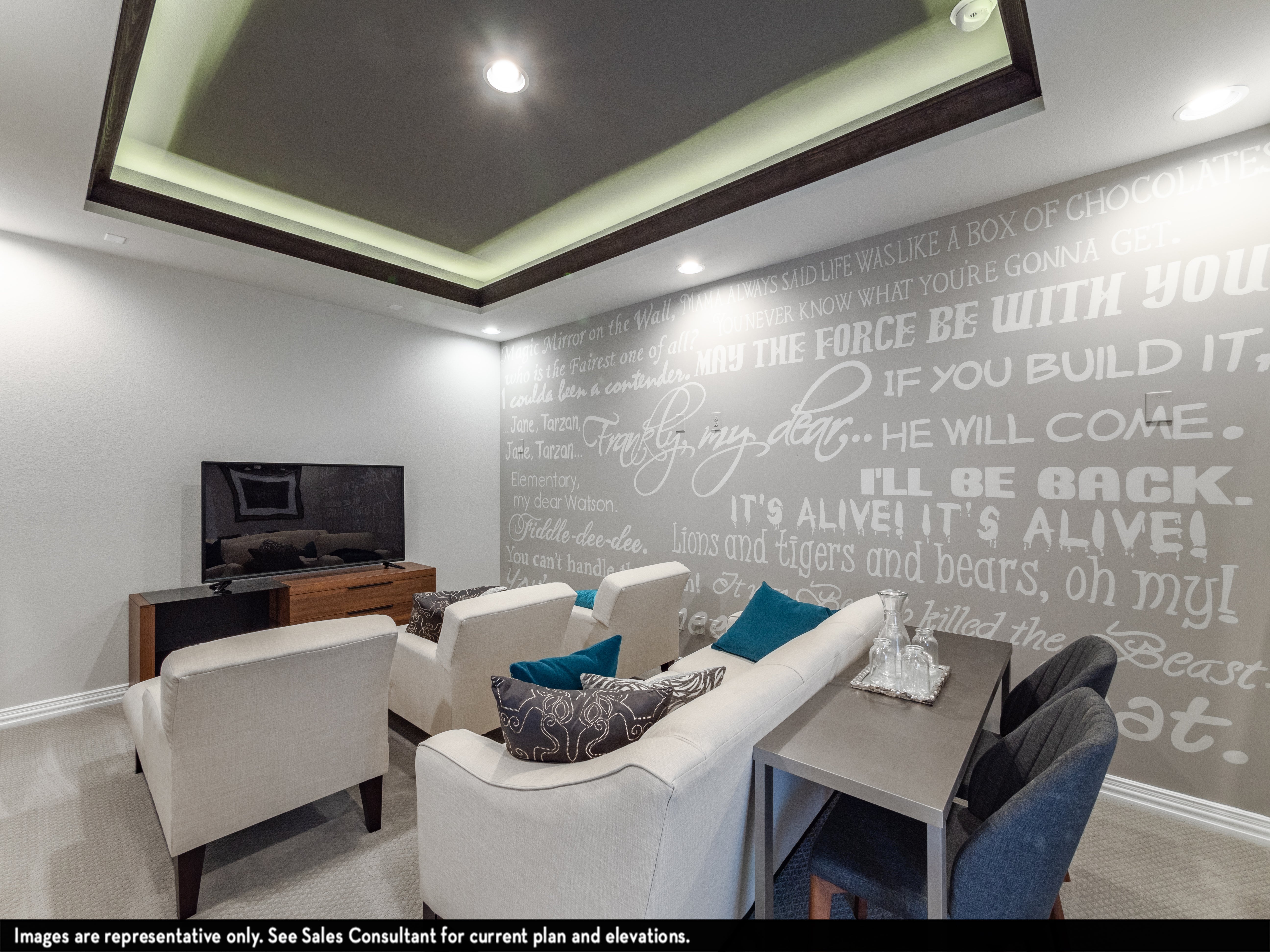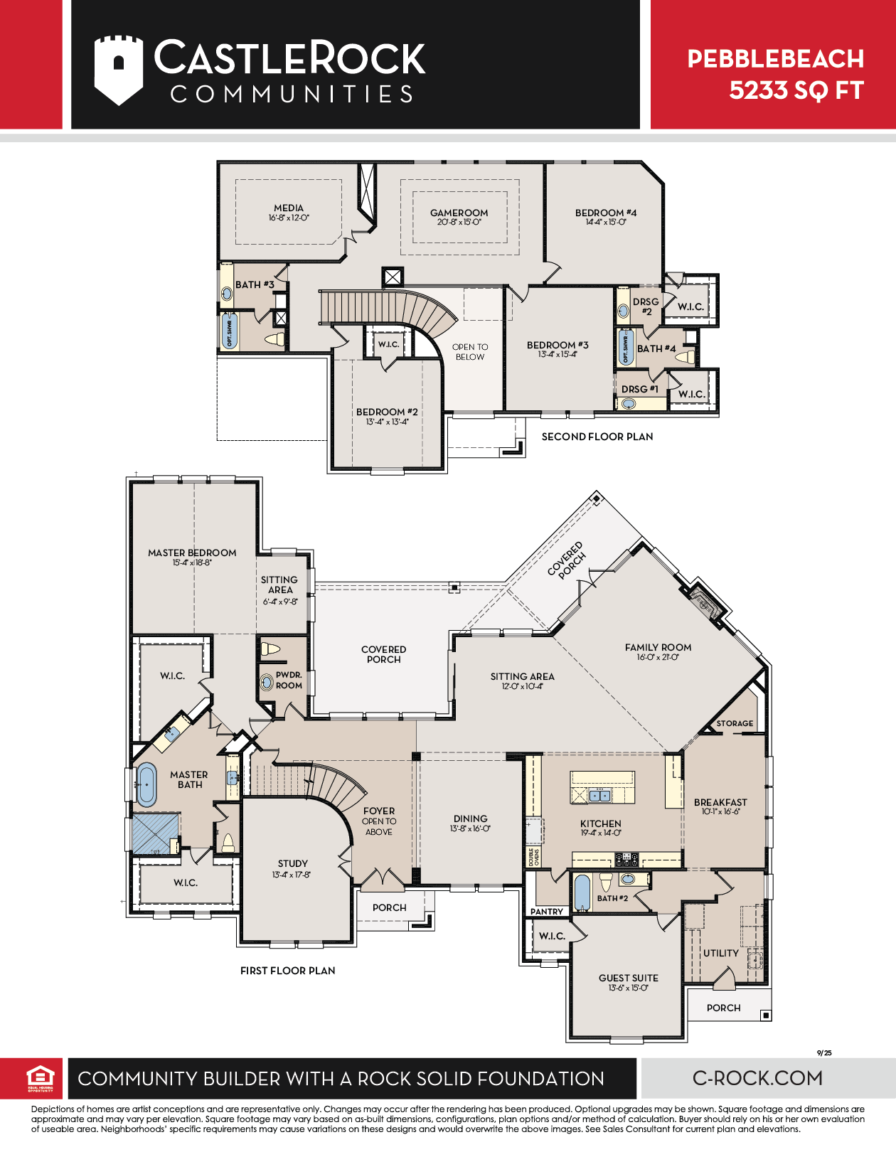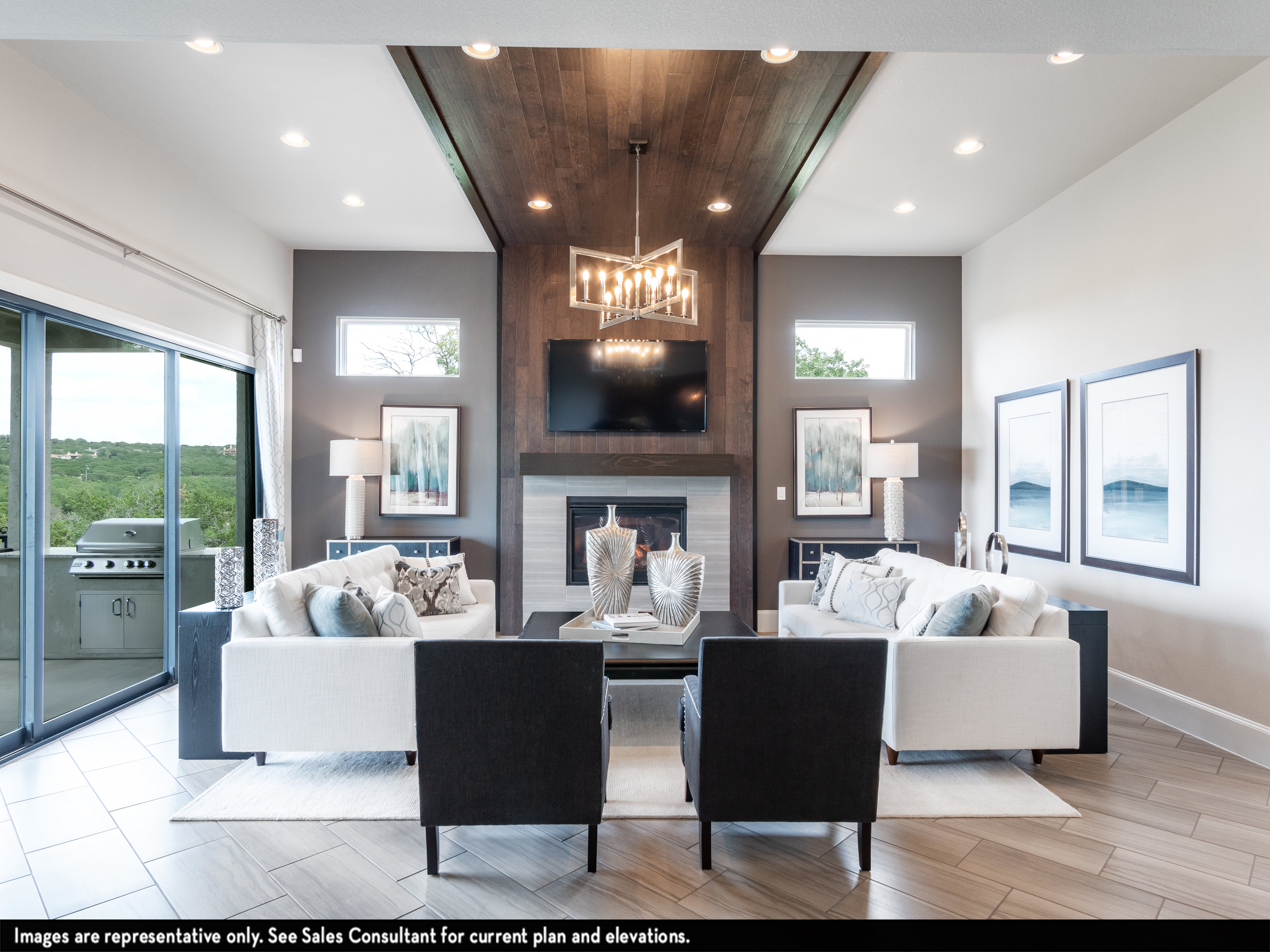 A custom design packed with character, the Pebblebeach floor plan will sweep you off your feet! Outdoor living is the focal point of this design with the expansive covered patio that is perfect for hosting friends and family on, as well as the large windows greeting guests at the foyer and carrying throughout the entire house allowing for an abundance of natural light. Adjacent to the foyer is your secluded study room and the welcoming dining room that flows straight through the elegant sitting area and massive family room complete with a beautiful fireplace. An impressive kitchen and conjoined breakfast area is located just off of the family room, and comes with a stunning kitchen island, a walk-in pantry, convenient double ovens, and gives you the option of expanding the area into a professional or gourmet chef's kitchen to fit your culinary needs. Behind your kitchen lies the walk-in utility room, a private guest suite with a walk-in closet, and a full bathroom. Retreat across the first floor, past the powder room and into your master bedroom complete with a delightful sitting area, double separated vanities, and two huge walk-in closets. A curved stair case leads to the second story, which encompasses a large gameroom that the kids will love, a media room perfect for movie nights at home, along with three additional bedrooms each with walk-in closets, and two full bathrooms, one being a jack-and-jill bathroom! Each floor in this home has options that allow you to personalize your home how you have always envisioned. The first floor allows an optional wine room off the breakfast area, a utility room with a caterer's kitchen, a pool bath, and a duel master bedroom. The second floor options include private 4th & 5th bathrooms, an additional fifth bedroom, super showers in the second/third bathrooms, and a large covered balcony off the gameroom. Storage is no issue in this open-concept floor plan. The spacious Pebblebeach will accommodate your family perfectly.