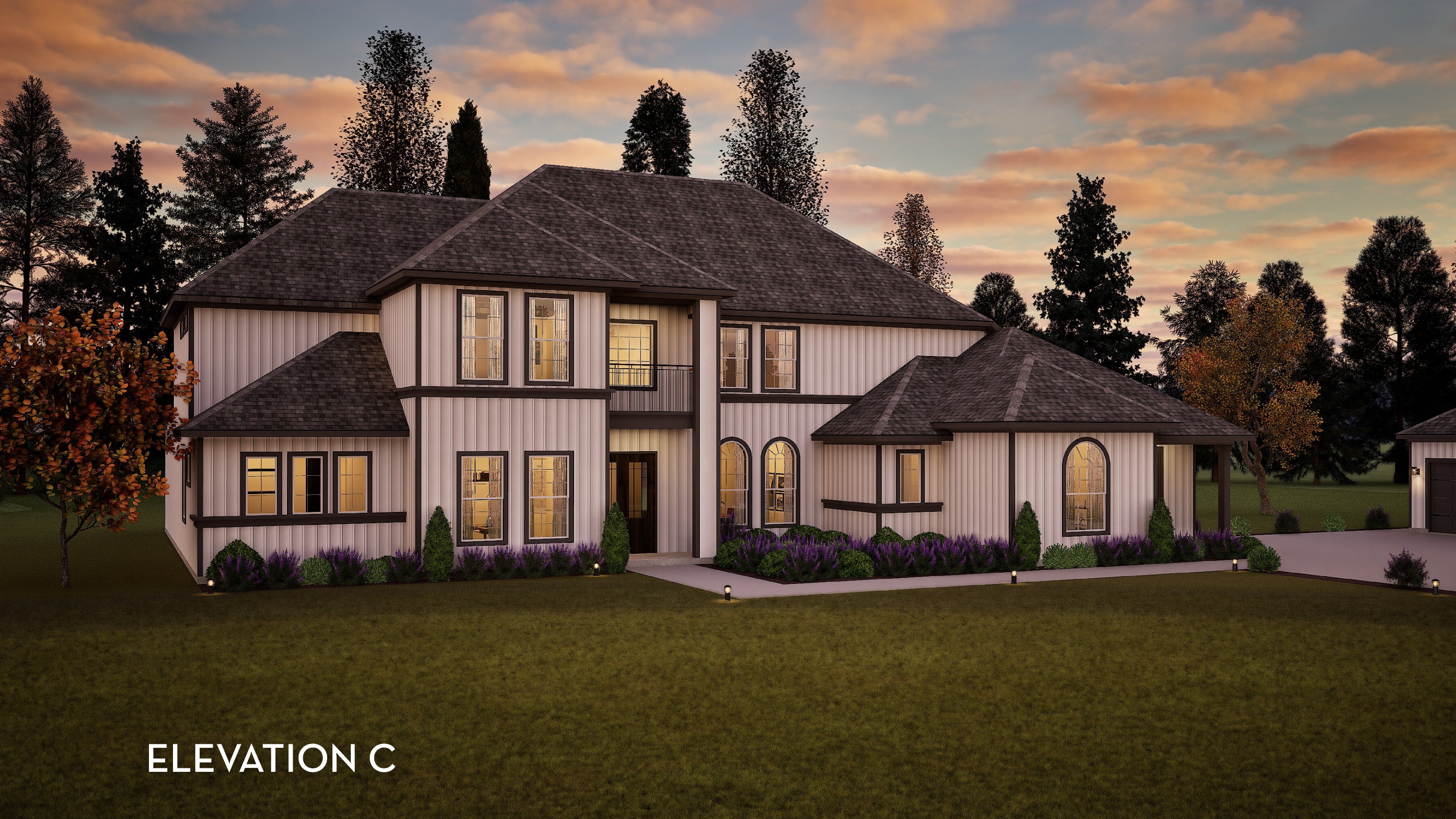 A custom design packed with character, the Pebblebeach floor plan will sweep you off your feet! Outdoor living is the focal point of this design with the expansive covered patio that is perfect for hosting friends and family on, as well as the large windows greeting guests at the foyer and carrying throughout the entire house allowing for an abundance of natural light. Adjacent to the foyer is your secluded study room and the welcoming dining room that flows straight through the elegant sitting area and massive family room complete with a beautiful fireplace. An impressive kitchen and conjoined breakfast area is located just off of the family room, and comes with a stunning kitchen island, a walk-in pantry, convenient double ovens, and gives you the option of expanding the area into a professional or gourmet chef's kitchen to fit your culinary needs. Behind your kitchen lies the walk-in utility room, a private guest suite with a walk-in closet, and a full bathroom. Retreat across the first floor, past the powder room and into your master bedroom complete with a delightful sitting area, double separated vanities, and two huge walk-in closets. A curved stair case leads to the second story, which encompasses a large gameroom that the kids will love, a media room perfect for movie nights at home, along with three additional bedrooms each with walk-in closets, and two full bathrooms, one being a jack-and-jill bathroom! Each floor in this home has options that allow you to personalize your home how you have always envisioned. The first floor allows an optional wine room off the breakfast area, a utility room with a caterer's kitchen, a pool bath, and a duel master bedroom. The second floor options include private 4th & 5th bathrooms, an additional fifth bedroom, super showers in the second/third bathrooms, and a large covered balcony off the gameroom. Storage is no issue in this open-concept floor plan. The spacious Pebblebeach will accommodate your family perfectly.