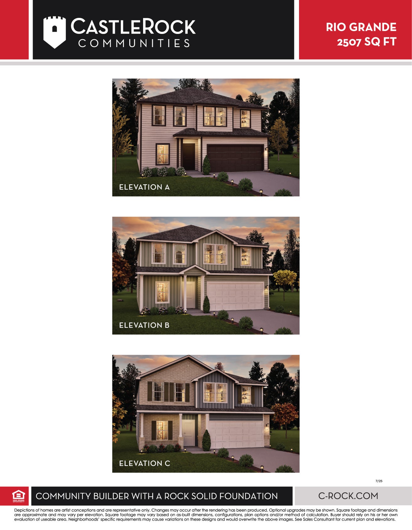 The wonderful, two-story Rio Grande home features an open-concept layout that is ideal for most any lifestyle. Upon entry, you are met with a private study room, a walk-in utility room, a closet, and access to your two-car garage. If you need extra storage space to store holiday decorations, tools, or even another car, opt to tack on an additional five feet for a two-and a half car garage or a full three-car garage! You are soon met with the soul of the home - the massive family room with two-story ceilings serving as the perfect place for entertaining, as well as the conjoined kitchen and breakfast area providing optimal convenience. The kitchen is fully equipped with sleek granite countertops, flat-panel birch cabinets, and industry-leading appliances. If you desire more counterspace, you have the option of including a kitchen island or extra cabinets! The high bar in the kitchen is ideal for the kids to eat breakfast in the mornings, and opens up to the family room, full embracing the open-concept feel. For the outdoor enthusiast, this home has the option of a spacious extended covered patio in the backyard. Head across the kitchen where you will discover the convenient downstairs powder room, and the secluded master suite. Your master bathroom is complete with cultured marble countertops, the option for dual vanities, and a large walk-in closet. Upgrade the master bathroom by opting for a luxury bathtub with stand alone shower or a master super shower instead! Follow up the stairs and you will come across an expansive game room, perfect for hosting family game nights, as well as the three remaining bedrooms with the second bedroom boasting a walk-in closet. The full secondary bath also sits upstairs in between the third and fourth bedrooms. As you can see, the Rio Grande floor plan can be personalized to fit your idea of your dream home the way you have always imagined. With the extensive features and options available, you cannot go wrong with the Rio Grande!